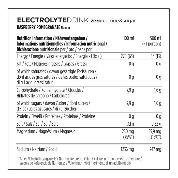 PowerBar Electrolyte Drink 1L to koncentrat zawierający kluczowe elektrolity: magnez i sód. Charakteryzuje się niską kalorycznością oraz niską zawartością cukru. Stanowi idealne odświeżenie podczas uprawiania sportu - przywraca równowagę płynów. Tylko naturalne aromaty. Nie zawiera aspartamu, laktozy i glutenu.